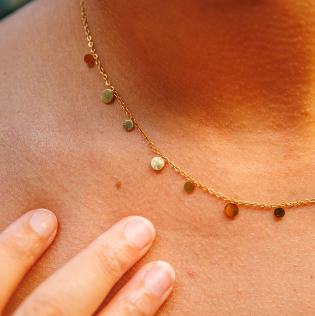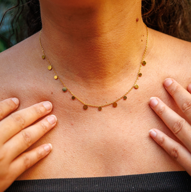Minimaliste et élégant, le collier Lina se distingue par son petit pendentif rond délicat. Un bijou fin qui sublime le décolleté avec discrétion et raffinement, idéal au quotidien ou pour compléter vos looks sophistiqués.