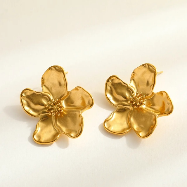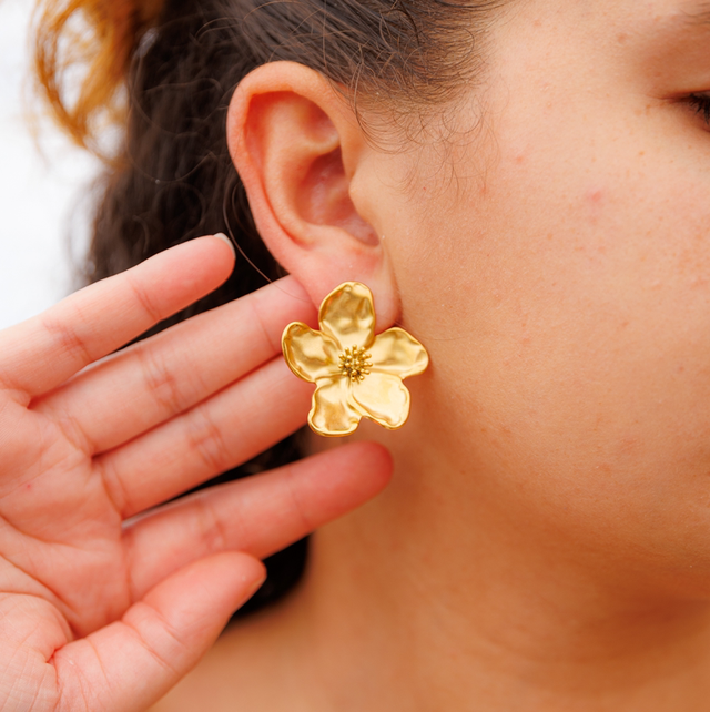 Apportez une touche de fraîcheur et de féminité à votre style avec ces boucles d’oreilles en forme de fleur dorée.
